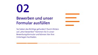 Damit bei Ihrer Bewerbung von Anfang an die richtige Energie spürbar ist, gestalten wir unseren Prozess für Sie transparent und nachvollziehbar. Schritt für Schritt zeigen wir Ihnen, wie Sie vom ersten Klick bis zu Ihrem Start bei uns gelangen. Unser Ziel: ein klarer, fairer Ablauf – voller Energie für Ihre Zukunft bei badenova.